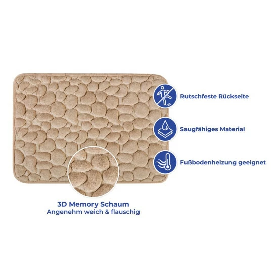 Auf der praktischen Vorlage steht man durch den weichen Memory-Schaum sanft wie auf Wolken. Die Matte eignet sich als Teppich vor Badewanne und Dusche und sorgt für ein angenehm weiches und warmes Gefühl unter den Füßen. Der Boden bleibt trocken und Wasserflecken auf dem Fußboden oder kalte Füße werden vermieden.
