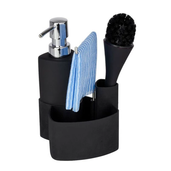 4-teiliges Geschirrspül-Set bestehend aus je 1 Seifenspender, Bürste, Auffangbecken und Tuchhalterung