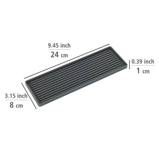 Die dekorative Ablage ist platzsparend hinter dem Spülbecken platzierbar und die Utensilien sind somit immer in Reichweite. Auch als Abtropfmatte für Schneidebretter, Gläser und Kaffeetassen stellt die Gummimatte eine echte Bereicherung dar. Die Spüle bleibt frei und Sie können die gewonnenen Arbeitsfläche als Ablage für andere Küchenutensilien nutzen. Zeitgleich sorgt die praktische Rillenstruktur der Spülmatte dafür, dass Küchenhelfer und Spülhelfer bequem trocknen können.