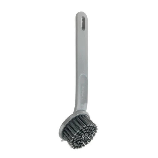 Praktisch ist auch die Aussparung am Ende des Stiels, an der die Bürste ganz einfach und platzsparend aufgehängt werden kann – etwa an einzelnen Küchenhaken oder Hakenleisten. So haben Sie die Bürste schnell zur Hand und können sie zum Trocknen ganz einfach aufhängen. Der Griff in Hellgrau und die Borsten in Dunkelgrau ergeben eine schlichte Farbkombination, die sich mit vielen verschiedenen Küchen-Farben kombinieren lässt.