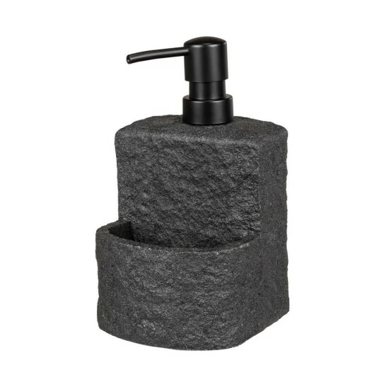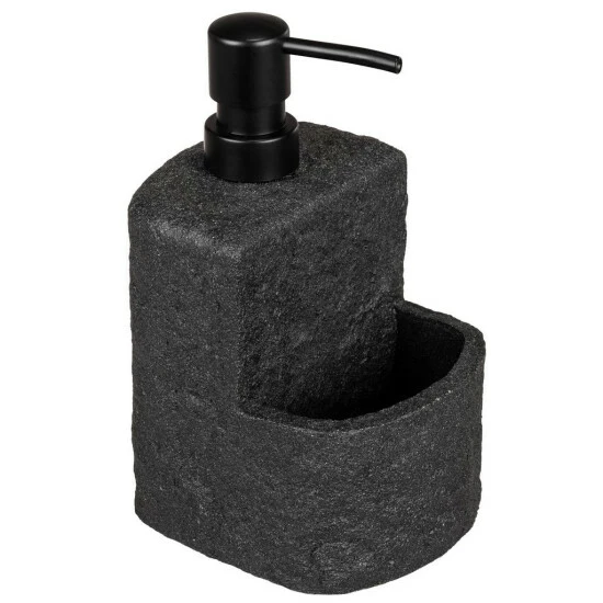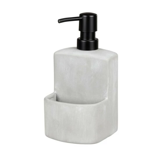 Die schwarze Kunststoffpumpe, kombiniert mit der Beton-Flasche in Hellgrau, sorgt für ein exklusives Ambiente in jeder Küche. Durch leichten Druck auf den Dosierknopf wird die gewünschte Menge Spülmittel herausgepumpt. Neben Spülmittel können Sie das Organisationstalent auch mit Handseife befüllen und haben so eine optimale Möglichkeit, sich an der Spüle oder am Waschbecken die Hände zu waschen. In das Verstaufach lässt sich auch eine Nagelbürste oder eine kleine Handcreme stellen.