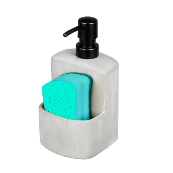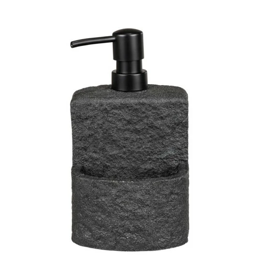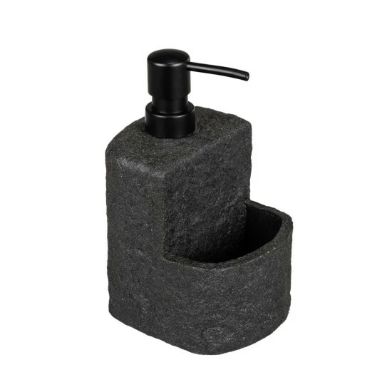 Der hochwertige Spülmittelspender Festival Stone setzt auffallend schöne Akzente in trendig schwarzer Steinoptik. Der Spender für Spülmittel mit Ablagefach hat eine kompakte Abmessung von (B x H x T) 10,5 x 18 x 11 cm und fasst großzügige 380 ml Flüssigseife oder Geschirrspülmittel. Durch die praktische Ablage haben Sie den Spülschwamm schnell zur Hand und können ihn nach dem Spülen in dem integrierten Ablagefach ganz bequem zum Trocknen ablegen.