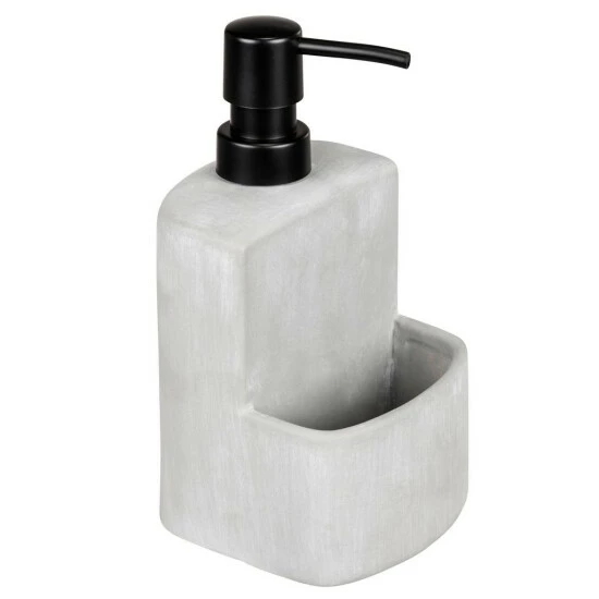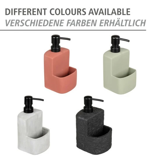 Die schwarze Kunststoffpumpe, kombiniert mit der Polyresin-Flasche in schwarzer Steinoptik, sorgt für ein exklusives Ambiente in jeder Küche. Durch leichten Druck auf den Dosierknopf wird die gewünschte Menge Spülmittel herausgepumpt. Neben Spülmittel können Sie das Organisationstalent auch mit Handseife befüllen und haben so eine optimale Möglichkeit, sich an der Spüle oder am Waschbecken die Hände zu waschen. In das Verstaufach lässt sich auch eine Nagelbürste oder eine kleine Handcreme stellen.