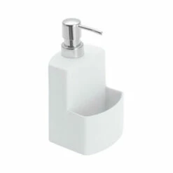 Spülmittel- Oder Seifenspender Mit Integrierter Aufbewahrungsmöglichkeit Für SpülschwämmeSoft-Touch Oberfläche (Keramik Gummiert) In WeißHochglanzverchromte Kunststoffpumpe Zur Portionierten SpülmittelabgabeNachfüllbarFassungsvermögen Ca. 380 Ml