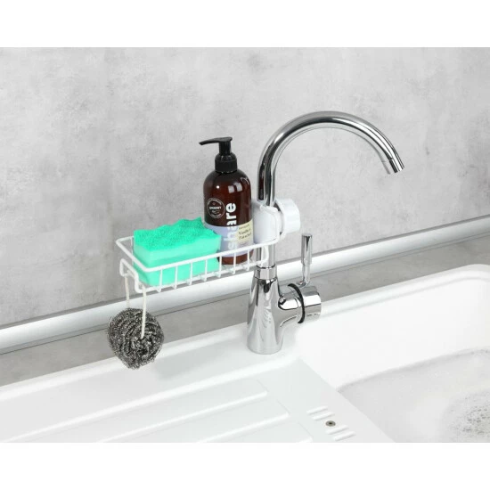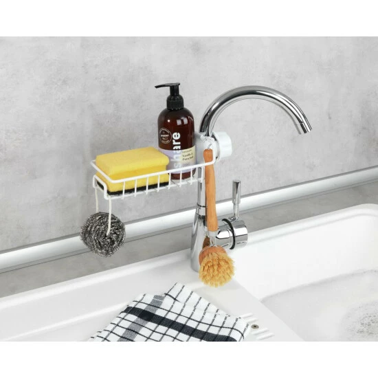 Besonders clever: Der Spülcaddy lässt sich an der Armatur montieren. So haben Sie mehr Stellfläche auf der Spüle zur Verfügung. Die Montage ist einfach. Der mitgelieferte Adapter aus ABS sorgt für eine optimale Befestigung. Geeignet ist der Organizer nur für runde Wasserhähne mit einem Durchmesser von 1,5-2,5 cm.