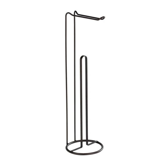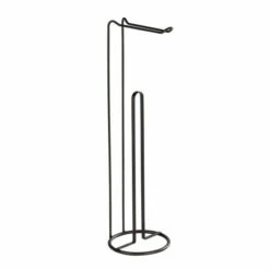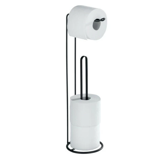 Der ausgefallene Stand-Toilettenpapierhalter Lugano 2 in 1 ist im rustikalen Fabrik-Look gestaltet und aus hochwertigem Stahl mit matt-schwarzer Lackierung gefertigt. Durch das Industrial Design ergänzt der Ersatzrollenhalter originell und akzentreich jedes Bad und Gäste-WC.