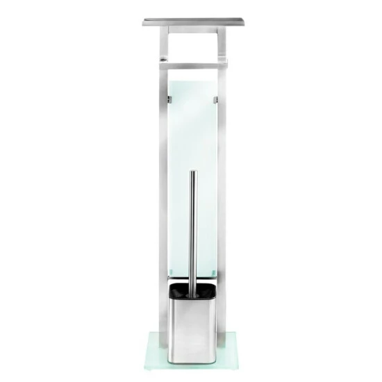 Im Lieferumfang ist eine WC-Bürste mit auswechselbarem, schwarzem Bürstenkopf von Ø 8,5 cm enthalten. Mit dieser praktischen WC-Bürste kann das WC gründlich gereinigt werden. Bei Nichtgebrauch kann diese anschließend in dem Behälter aus satiniertem Sicherheitsglas verstaut werden.