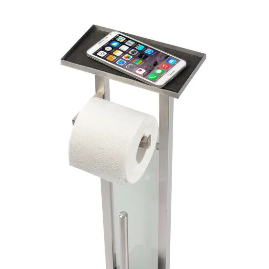 Die Ablage für Kleinigkeiten ist mit rutschfestem Material bedeckt, damit die dort gelagerten Sachen, wie z.B. Handy, nicht herunterrutschen. Die mitgelieferte Toilettenbürste hat einen ersetzbaren Kopf, der es leicht macht, die Bürste immer sauber und hygienisch zu halten. Der Ersatzrollenhalter in Form von einer Metallstange ermöglicht es Ihnen, bequem einen Vorrat an Papier zu lagern. Das Ganze sieht stilvoll aus und Eleganz wird durch Glasveredelungsdetails ergänzt. Eine einfache Form eines Toilettenpapierständers mit Ablage DEBAR passt in ein modernes Badezimmer im Haus, Büro oder Restaurant.