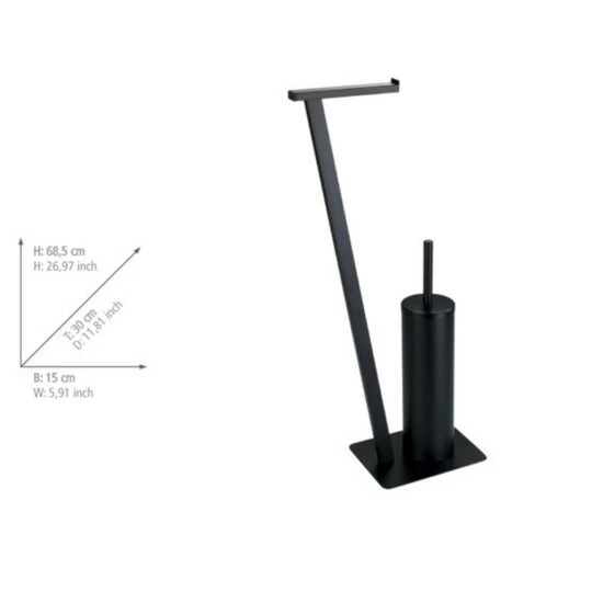 Lieferumfang: 1 x Stand WC-Garnitur Lirio Schwarz matt, Toilettenpapier-Rollenhalter mit Bürstenhalter von WENKO, aus lackiertem Stahl, Maße (B x H x T): 15 x 68,5 x 30 cm