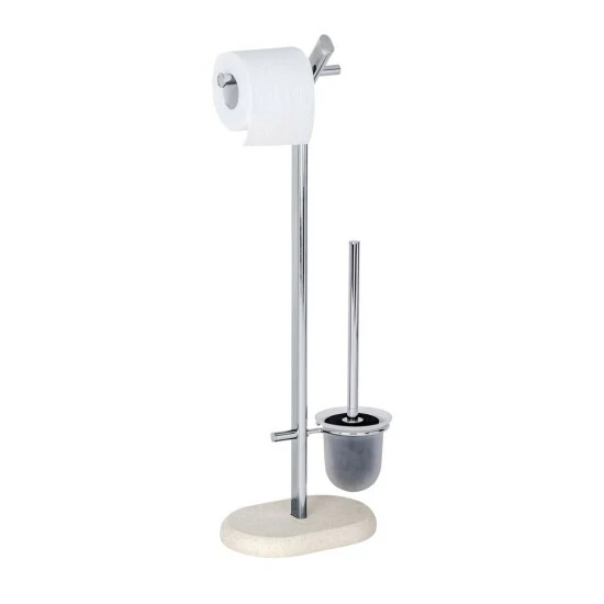 Die WENKO Chrom Standgarnitur aus der Bad-Serie Puro ist ein moderner, eleganter Helfer im Bad und Gäste-WC. Ausgefallene Rohrführung getragen von einer hochwertigen, schweren Bodenplatte aus Polyresin in natürlicher Sandstein-Optik, veredelt die Standgarnitur zu einem optischen Highlight in jedem Bad.