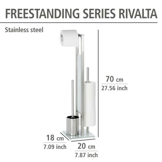 Wenko Rivalta toilettenpapierhalter und Bürste Ein praktischer, stilvoller und multifunktionaler Toilettenpapierhalter und Bürste in einem. Dieser Halter lässt sich leicht in jedem Badezimmer oder jeder Toilette anbringen. Dieser Halter eignet sich auch zum Ablegen von Ersatz-Toilettenpapierrollen, so dass Ihnen nie das Toilettenpapier ausgeht. Spezifikationen: Farbe: mattes Silber Geschlecht: unisex Material: rostfreier Stahl Abmessungen: 18 x 70 x 23 cm (BxHxT) Gewicht: 2,0 kg