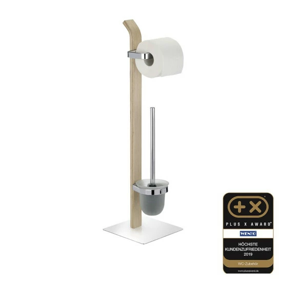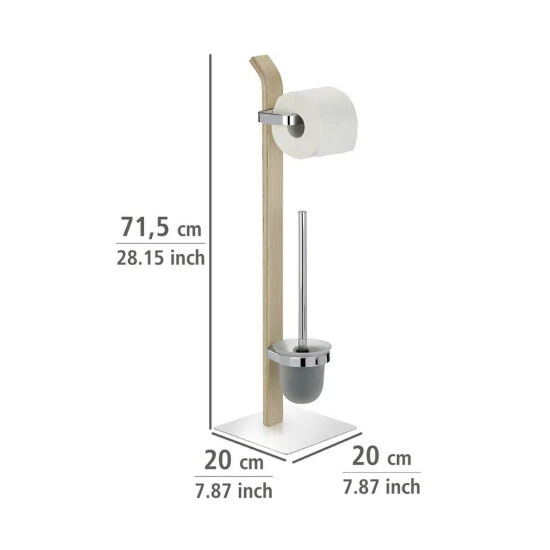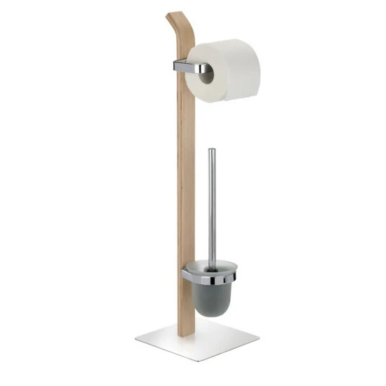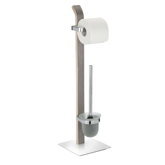 Die Stand WC-Garnitur Samona Nature ist eine komfortable 2 in 1 Kombination aus offenem Toilettenpapierrollen- und WC-Bürstenhalter, welche die Rolle und die Bürste stets dekorativ griffbereit hält. Die massive, quadratische Bodenplatte sorgt für stabilen Halt. Ganz ohne Schrauben und Bohren kann die Garnitur einfach dekorativ neben das WC gestellt werden.