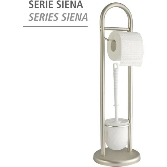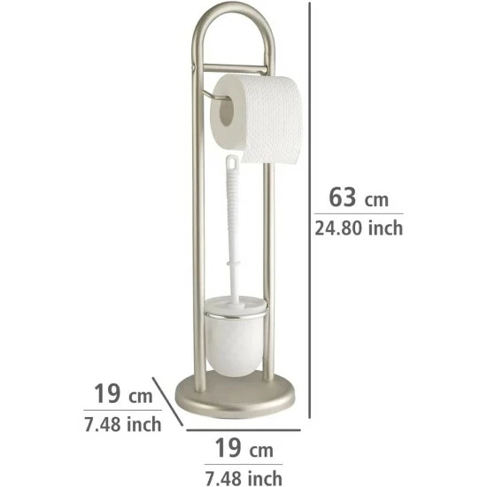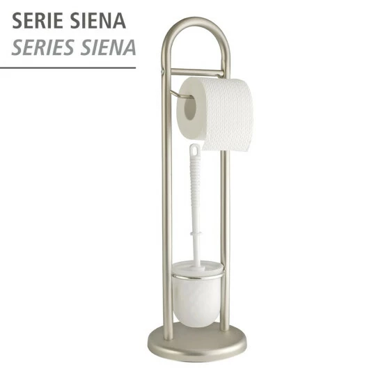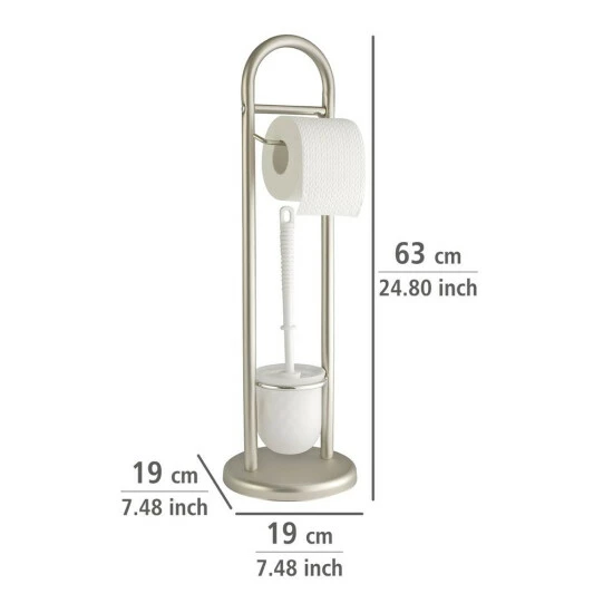 - Lieferumfang: 1 x Stand WC-Garnitur Siena, Toilettenpapier-Rollenhalter mit Bürstenhalter von WENKO, Maße (B x H): Ø 19 x 63 cm