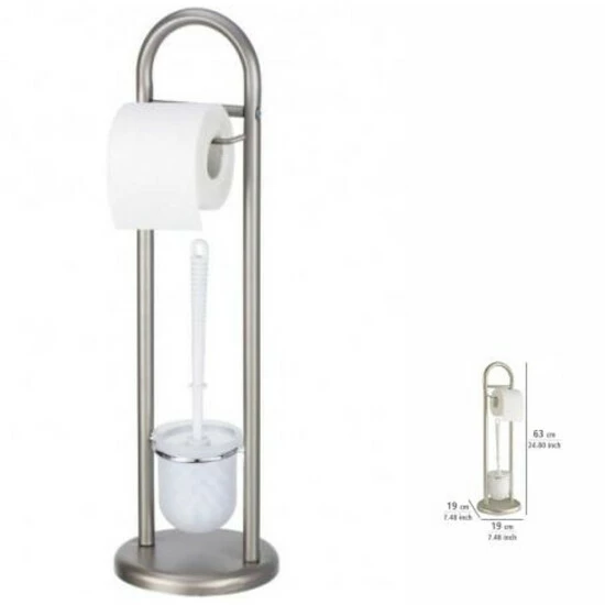 Sie ist eine 2 in 1 Kombination aus offenem Toilettenpapierrollen- und offenem WC-Bürstenhalter aus satiniertem Kunststoff. Die massive, runde Bodenplatte sorgt für stabilen Halt.