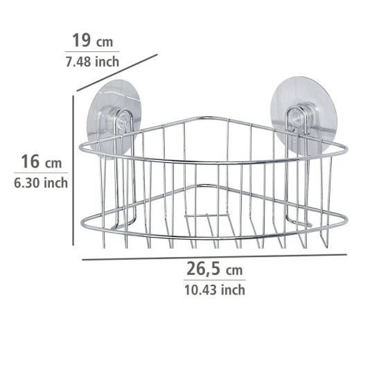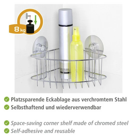 WENKO 22218100 Static-Loc Eckablage Osimo groß – Befestigen ohne bohren, Stahl, 26.5 x 16 x 19 cm, Chrom%0d%0a %0d%0a %0d%0a%0d%0a %0d%0a %0d%0a %0d%0a %0d%0a