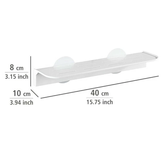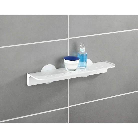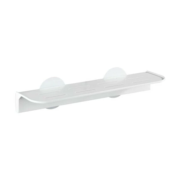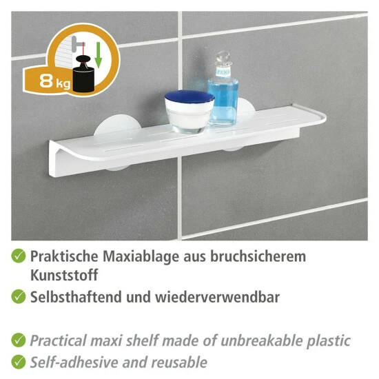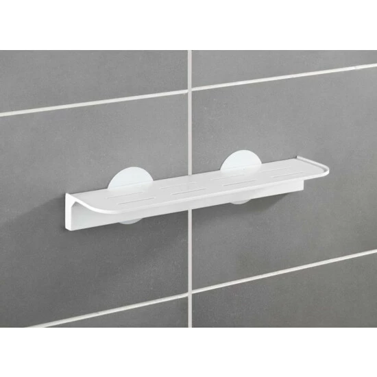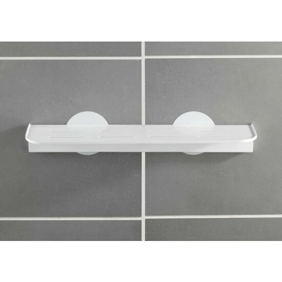 - Geräumige, weiße Ablage aus bruchsicherem Kunststoff für Bad- und Duschutensilien