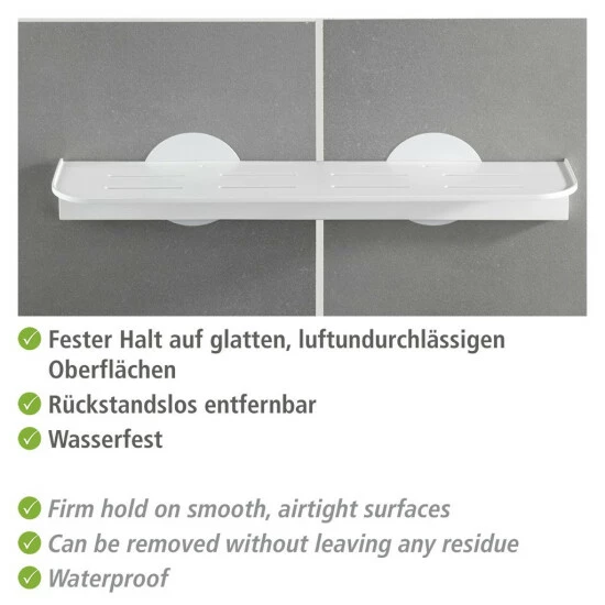 Die Maxiablage Osimo aus der innovativen Static-Loc® Bad-Accessoires Serie Osimo bietet neben der Möglichkeit der dekorativen Aufbewahrung aller Bad-Utensilien einen besonderen zusätzlichen Vorteil. Im Gegensatz zu den meisten Ablagen wird bei dieser bei der Montage völlig auf bohren oder schrauben verzichtet. Erreicht wird dieses durch das Static-Loc®-Befestigungssystem von WENKO.