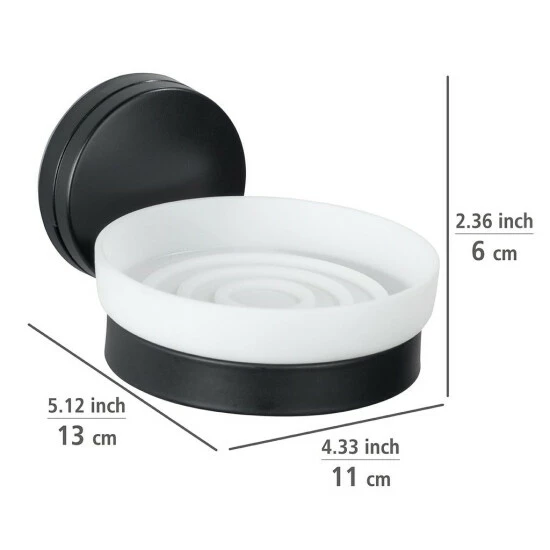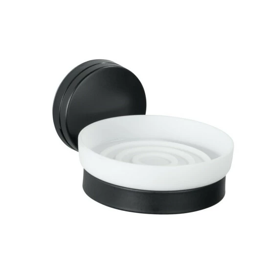 Die hochwertige, runde Seifenablage eignet sich ideal zur Aufbewahrung von Handseife. Die originelle Ablage ist mit einer abnehmbaren Schale aus weißem Kunststoff ausgestattet. Eventuelle Flüssigkeit wird aufgefangen und die Seife bleibt ansehnlich und griffbereit in der Schale. Die praktischen Maße der Seifenablage und ihre moderne schwarze Loft-Optik erlauben es, sie platzsparend, unaufdringlich und den eigenen Wünschen entsprechend, in nahezu jedes Bad zu integrieren.