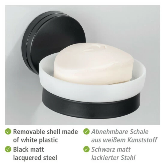 Innovativ und trendig, so setzt die Seifenablage von WENKO Akzente in jeden Haushalt. Die Static-Loc® Plus Seifenschale haftet durch statische Aufladung und bietet starken Halt auf glatten luftundurchlässigen Oberflächen (wie z.B. Fliesen, Glas, folierte Holzplatten), ganz ohne schrauben und bohren!