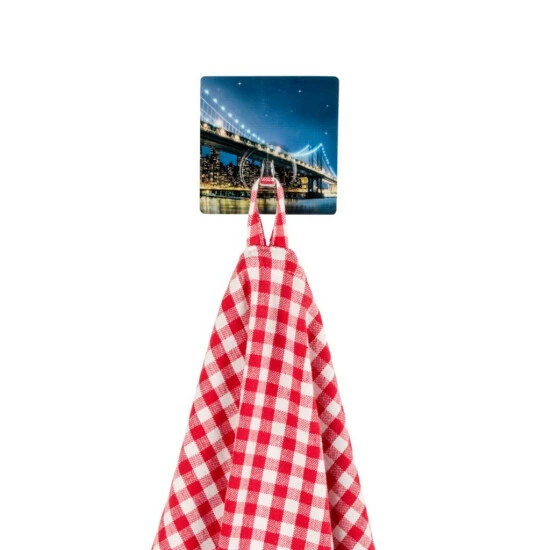 Der ausgefallene Haken mit dem Motiv der Brooklyn Bridge kann sofort belastet und jederzeit repositioniert werden. Hand- und Geschirrtücher, Waschlappen, Topfhandschuhe, etc. hält der praktische Helfer gleich dekorativ griffbereit.