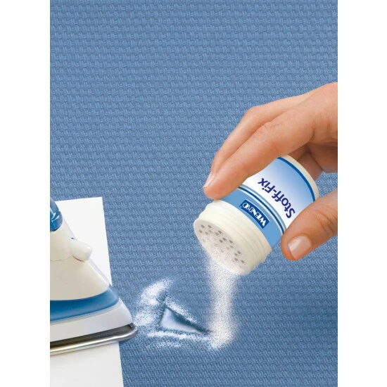 Das FABRIC-FIX-Pulver für Kleidungsreparaturen kann sich in jedem Haushalt als besonders hilfreich erweisen. Es flickt Löcher, säumt, stopft und kürzt ohne Nadel und Faden. Es ist ungewöhnlich einfach anzuwenden – das Loch einfach mit dem Pulver bestäuben, Flicken darauf legen, bügeln, fertig! Es hinterlässt keine Reparaturspuren. Die Kleider können nachher sowohl in der Waschmaschine gewaschen, als auch chemisch gereinigt werden – die ‘Nähte’ kleben nicht auseinander. Für jede Art Stoff geeignet – eignet sich sowohl, um Gardinen zu säumen, als auch um Hosenbeine zu kürzen.