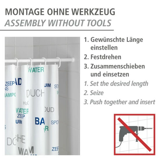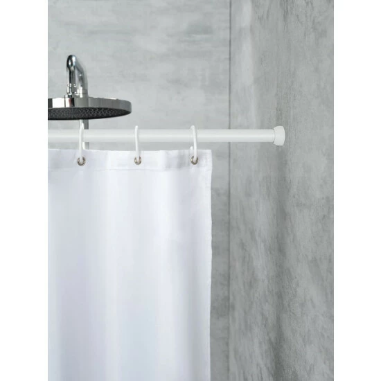 Schnelles und einfaches Anbringen des Dusch- oder Badewannenvorhangs – die Teleskop-Duschstange löst flexibel das Problem von fehlenden Aufhängemöglichkeiten für Vorhänge insbesondere im Badezimmer.