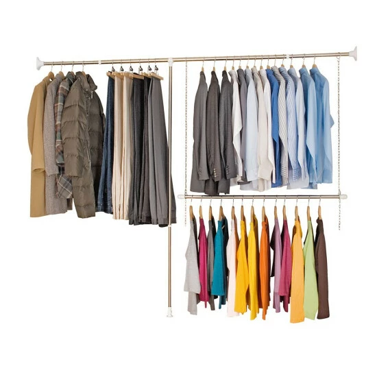 Mit dem Teleskop-Garderoben-Set aus hochwertigem, rostfreiem Edelstahl wird der Traum eines begehbaren Kleiderschrankes wahr, denn nahezu jeder Raum kann jederzeit einfach als Kleiderschrank eingerichtet werden.