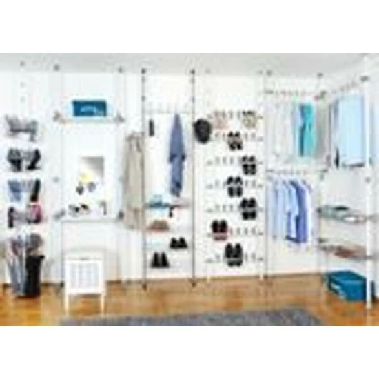Das ACHILLES Schuhsystem ist eine komplette Organisation Ihrer Garderobe. Lasst uns den Raum auf eine sehr schlaue Weise nutzen. Es ist sehr geräumig – es wird bis zu 36 Paar Schuhe halten! Der Veranstalter hat die Möglichkeit, 30 Paar Schuhe aufzuhängen und zusätzlich 6 Griffe für Stiefel oder Gummistiefel. Das Design sorgt dafür, dass es bei uns zu wenig Platz braucht. Es ist möglich, die Höhe von 100-300 cm einzustellen. Die Installation erfordert kein Bohren, nur zwischen dem Boden und der Decke klemmen.