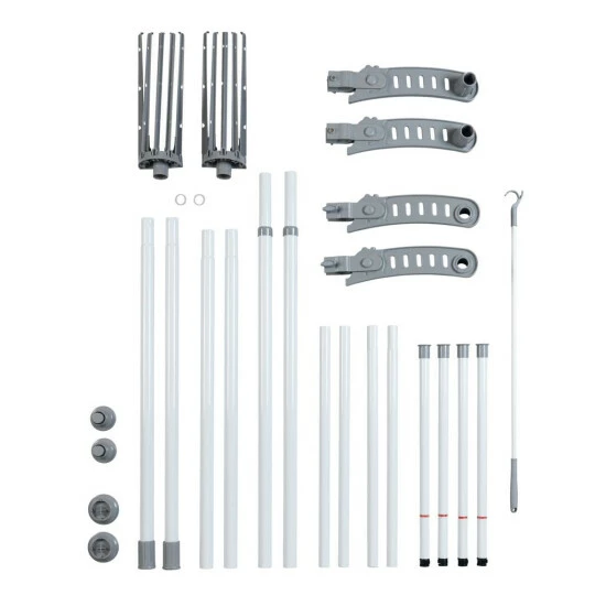Das Teleskop-Garderoben-System aus besonders schwere Qualität ist aus weißen pulverbeschichteten Metallstangen kombiniert mit hochwertigen, grauen Kunststoff-Verbindungsstücken gefertigt. Der Auf- und Einbau erweist sich ebenfalls als kinderleicht. Ganz ohne Werkzeug und Bohren kann das Kleidungssystem zwischen Decke und Boden eingeklemmt werden.