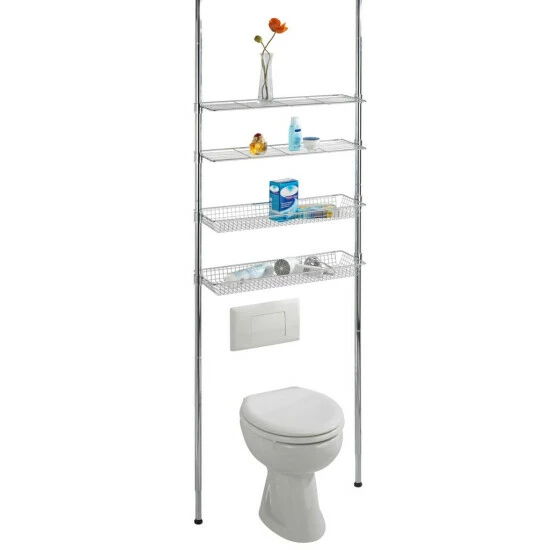 Dieses Teleskopgestell schafft zusätzlichen Stauraum in der Toilette, im Badezimmer, im Trockner oder in der Waschmaschine. Alle Ihre Badeutensilien erhalten so einen dekorativen Aufbewahrungsort. Es besteht aus zwei Ablagekörben und zwei Gitterregalen, die Sie an der gewünschten Stelle platzieren können. Die Montage und Installation ist einfach und ohne Werkzeuge möglich