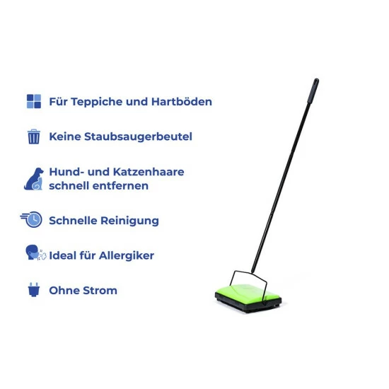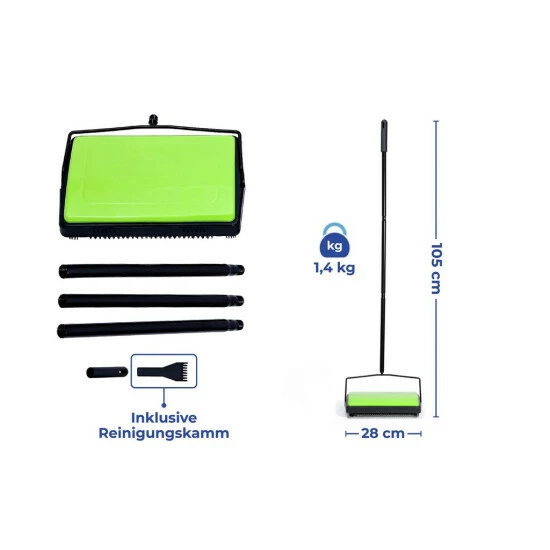 - Ohne Strom, leise und kraftvoll. Kein aufgewirbelter Staub mehr – ideal für Allergiker