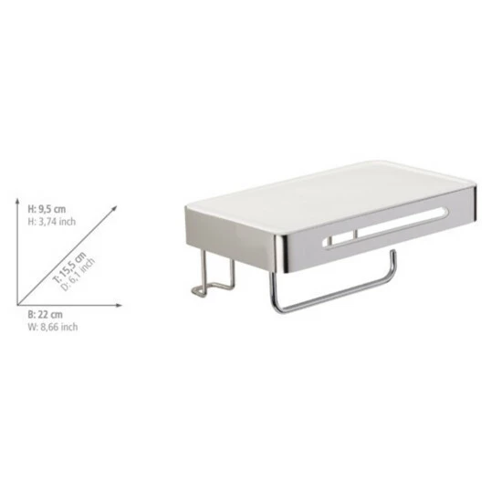 Vervollständigen Sie Ihre Toilette oder Ihr Badezimmer mit diesem modernen, schön verarbeiteten Toilettenhalter aus der Premium Plus Kollektion von Wenko. Dieser Halter hat auch eine Ablage, so dass Sie jederzeit Ihre Schlüssel, Ihr Mobiltelefon, Hygieneartikel oder ähnliches ablegen können. Dieser robuste Halter wird mit einem Satz Schrauben und einem Satz Dübel für die Wandmontage geliefert. Die Dübel ermöglichen die Montage der Halterung ohne Bohren. Das ist praktisch!