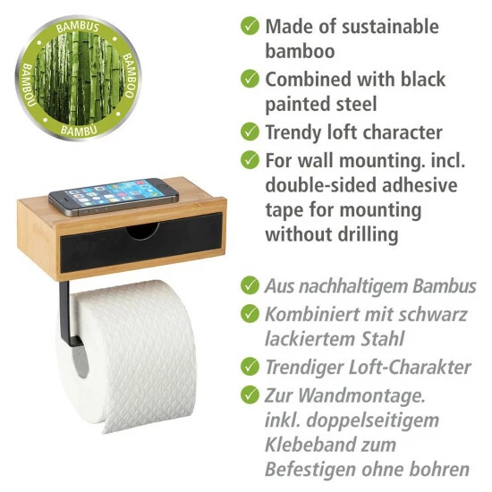 - BAMBUSA Toilettenpapierhalter mit Schublade,