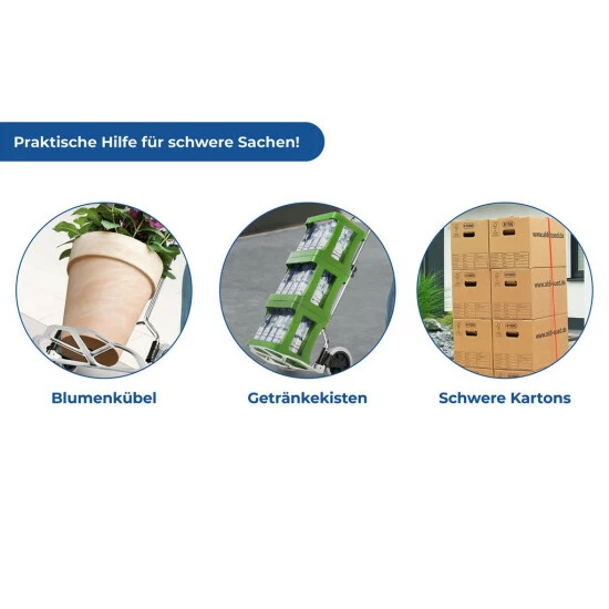 Ein vielseitig einsetzbarer · kleiner leichter Helfer für schwere Lasten. Mit dem Transportkarren werden schwere Lasten ganz einfach befördert. Die Sackkarre kann z. B. zum Transport von Blumenkübeln im Garten oder beim Einkauf von Getränkekisten und schweren Kartons genutzt werden.
