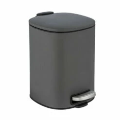 Lieferumfang: Kosmetik Treteimer Alassio in mattem Grau aus Stahl, Fassungsvermögen 5 Liter, eleganter Kosmetikeimer mit Easy-Close Absenkautomatik und Anti-Finger-Print Beschichtung von WENKO, Maße (B x H x T): 24,5 x 20,5 x 27 cm