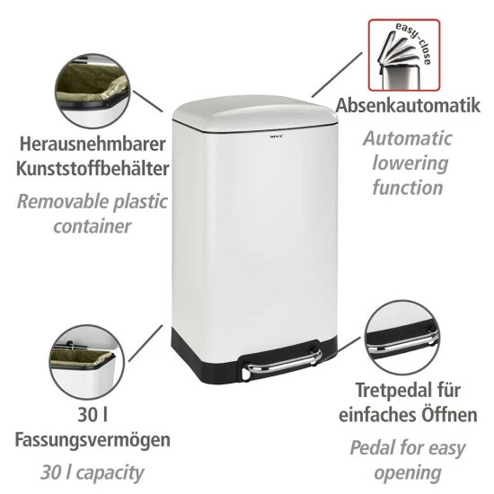 Wenko «treteimer Studio Easy-Close 30 Liter Edelstahl weiß»