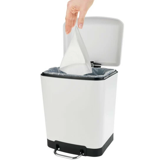 Kümmern Sie sich um Ordnung in Stil. Die Mülltonne „Studio“ passt perfekt in Ihr Zuhause, Ihre Räumlichkeiten und Ihr Büro. Dank des Easy Close Systems fällt der Deckel leise, ohne Lärm zu machen. Aus diesem Grund ist es ideal für einen Arbeitsplatz, an dem Stille wichtig ist. Einfache, robuste Mechanik mit Metallpedal ermöglicht es Ihnen, den Korb ohne Hände zu öffnen. Dies wird dazu beitragen, die Hygiene in Toiletten im öffentlichen Raum zu verbessern — z. B. in Büros, Räumlichkeiten oder Hotels. Der Korb ist aus leicht zu reinigendem weißem und schwarzem Kunststoff gefertigt. Es verfügt über eine herausnehmbare Plastikkartusche, die zusätzlich dazu beiträgt, den Korb sauber zu halten. Weiße Farbe passt fast jedem Interieur — Zimmer, Büro, modernes oder traditionelles Badezimmer. Der Mülltonne „Studio“ hat 6 Liter Fassungsvermögen. Seine Abmessungen sind 32x23x22,5 cm.