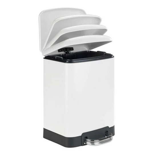 Dieser edle Treteimer ist aus hochwertigem, lackiertem Stahl gefertigt. Die weiße Oberfläche und die schöne Form verleihen dem Behälter ein elegantes Aussehen. Der Tret-Abfallsammler hat ein Leicht-Schließ-System, so dass der Deckel sanft und leise schließt, ohne hart aufzuschlagen. Dank der Pedalfunktion kann der Behälter ohne Griff geöffnet und geschlossen werden. Der Treteimer hat ein Fassungsvermögen von sechs Litern und ist ideal als Abfalleimer in Küche, Büro und Haushalt.