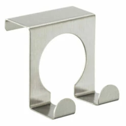 Hochwertiger Doppel-KüchenhakenProblemlos einzuhängen an Türen von 2 cm FalzstärkeTüre lässt sich leicht schließenAus rostfreiem, mattiertem EdelstahlMaße (B x H x T): 5 x 5 x 4.9 cm