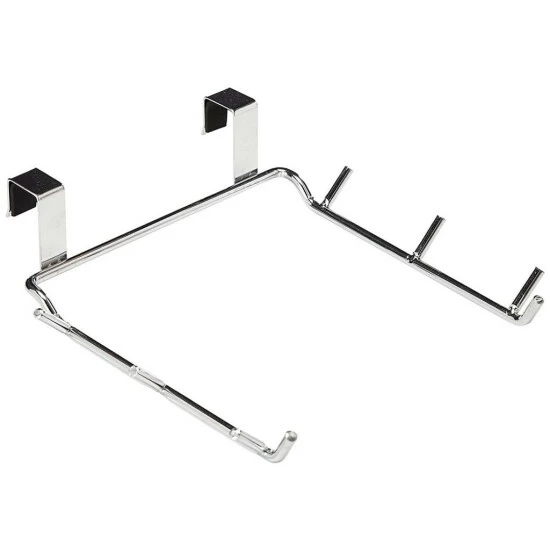 Mit dem praktischen Tür-Müllbeutelhalter können Küchenabfälle ganz bequemt während der Essenszubereitung direkt entsorgt werden. Der Halter aus verchromtem Metall wird einfach an Schubladen oder Schranktüren bis 2 cm Falzstärke gehängt und die Mülltüte befestigt. Alle Abfälle – wie beispielsweise Obst- und Gemüseschalen – gelangen von der Arbeitsplatte oder dem Schneidebrett direkt in den Müllbeutel. Das schafft Platz, Ordnung und Hygiene in jeder Küche.