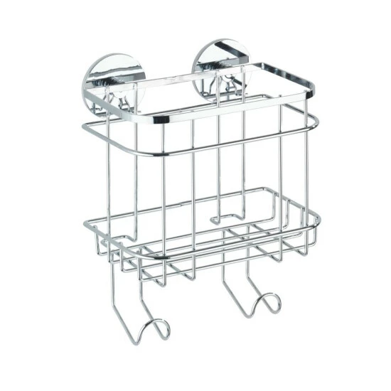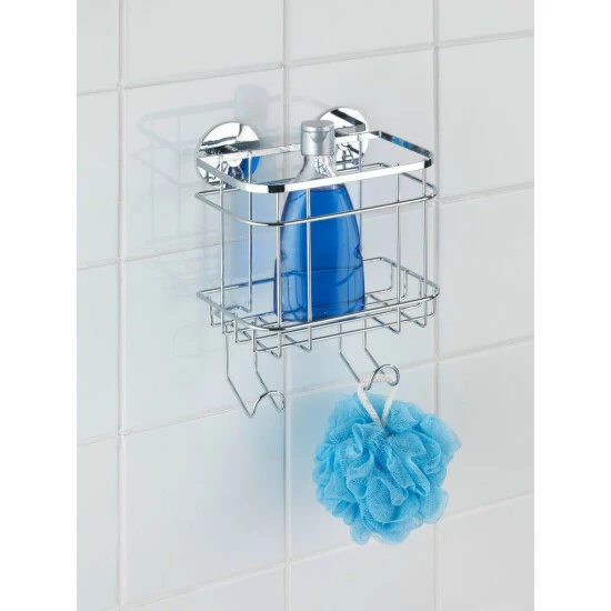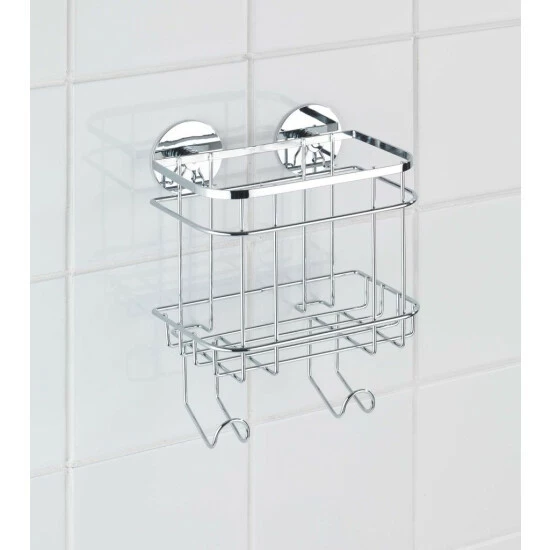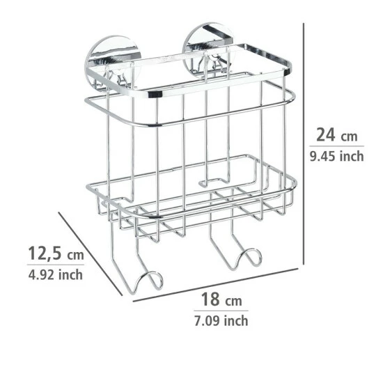 Der dekorative Turbo-Loc Wandkorb ist sehr edel im Design durch sein hochwertiges, glänzendes und rostfreies Edelstahl. Auf der Wandablage können Bad- und Pflegeutensilien übersichtlich aufbewahrt werden. Besonders praktisch: Der hohe Korb für sicheren Stand der von Shampoo, Duschgel, Körperlotion und Co. Die beiden Haken halten zusätzlich den Schwamm oder Badepuschel griffbereit.