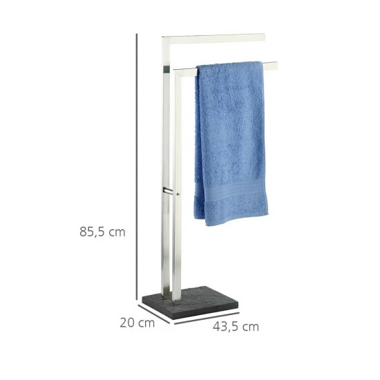 Der praktische Helfer ist durch die hochwertigen Materialien aus rostfreiem Edelstahl und dem massiven Fuß in Stein-Optik besonders robust und wertet jeden Raum optisch auf.