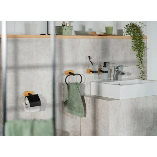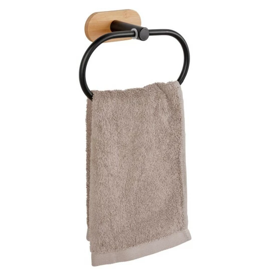Der Handtuch-Ring der Bad-Serie besteht aus hochwertigem Edelstahl, welcher 100 % rostfrei ist. Im erhabenen Schwarz gehalten sind alle Home-Accessoires originelle Design-Stücke im Industrial Chic. Das matte Finish verleiht Ihrem Bad vollkommene Ästhetik. Die Orea Bamboo Reihe ist zudem mit Elementen aus natürlichem Bambus kombiniert. Die warme Ausstrahlung des schnell nachwachsenden Rohstoffes bildet ein harmonisches Konzept der Homeaccessoires.