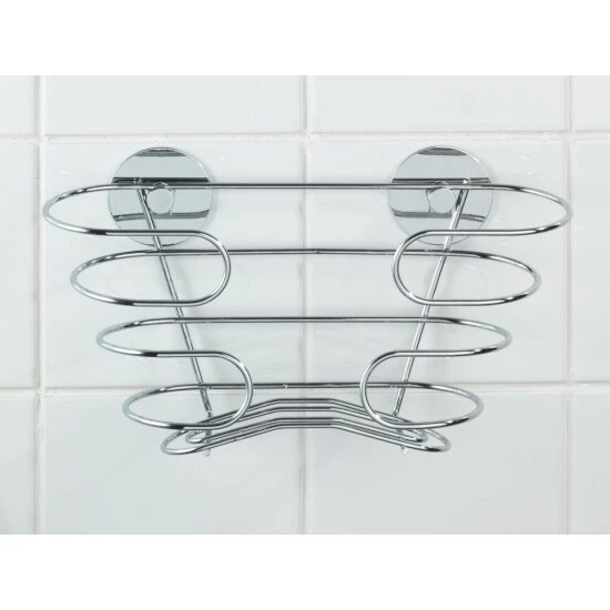 Das Badregal für Badutensilien. Hält Shampoo, Duschgel oder Spülung auf Knopfdruck. Ideal für Duschabtrennungen oder über Badewannen. Aus Edelstahl gefertigt. Die gerippte Struktur ermöglicht freie Entwässerung. Bequemes Montagesystem mit Selbstklebendes Turbo-Loc, das gut auf allen glatten Oberflächen haftet, ohne die Glasur oder ihr Muster zu beschädigen.