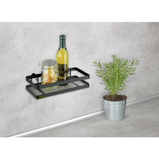 Auf diesem dekorativen Küchenregal mit grauem Kunststoffboden werden alle Utensilien stets überschaubar und griffbereit aufbewahrt. (Größe der Ablagefläche: L 24,8 cm, B 12 cm, Tiefe 5,5 cm)