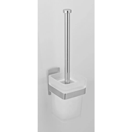 Das Design wird komplettiert durch den abnehmbaren Behälter aus satiniertem Glas, in dem die WC-Bürste abgestellt wird. Mit dem schicken Wandhalter haben Sie diese stets griffbereit und können für eine hygienische Reinigung der Toilette sorgen. Die Bürste mit glänzendem Stiel ist mit einem Kunststoff-Bürstenkopf in Weiß (Ø 7,5 cm) ausgestattet, der bei Bedarf auswechselbar ist. Insgesamt misst der praktische Badhelfer (B x H x T): 9 x 35 x 10,6 cm und macht sowohl im Bad als auch im Gäste-WC eine gute Figur.