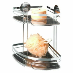 Turbo-Fix Eckbadezimmerregal 2 Ebenen der deutschen Marke WENKO ist ein tolles für jede Duschkabine. Wählen Sie ein sehr erfinderisches und äußerst praktisches Badezimmerregal! Solch ein Organizer wird es Ihnen viel einfacher machen, alltägliche Aktivitäten zu machen – machen Sie alle notwendigen Kosmetika und Badgeräte in Reichweite, was die Reinigung und Hygiene über der Badewanne oder Dusche verbessert.