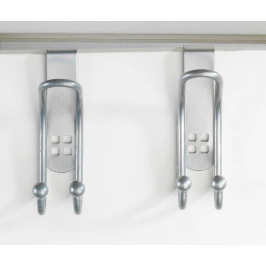 Die Türhaken werden einfach über die Tür gehangen – ohne Bohren, Schrauben, Dübel oder Nägel. Die Tür schließt trotz eingehängter Haken weiterhin problemlos. Die Türhaken sind für eine Türfalzstärke von 2 cm geeignet.