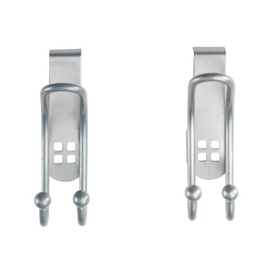 Die Haken im angesagten Lochdesign sind aus silbernem Stahl gefertigt und entsprechend robust. Mit den beiden Haken wird zusätzlicher Platz in Diele, Schlafzimmer oder Bad geschafft. Durch die besondere Form des Hakens ergibt sich jeweils eine doppelte Aufhängemöglichkeit für Jacken, verschiedenen Blusen, Duschtücher oder Bademäntel.