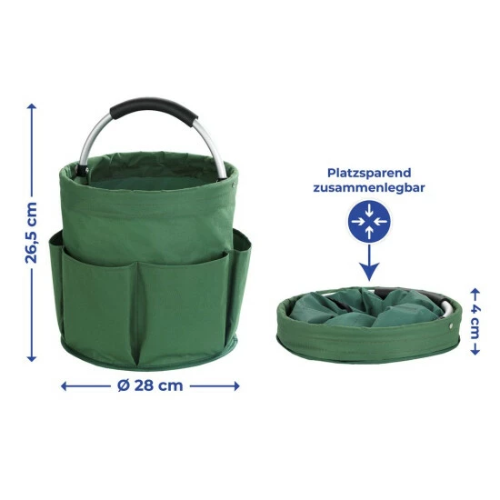 Dieser Mehrzweckbehälter wird für jede Arbeit im Garten oder auf dem Grundstück hilfreich sein, und nach der Arbeit werden Sie ihn ohne Schwierigkeiten zusammenbauen, so dass er wenig Platz in der Garage oder im Keller einnimmt. Der Korb hat einen Durchmesser von 26,5 cm und eine Höhe von 28 cm (nach dem Falten 5 cm).